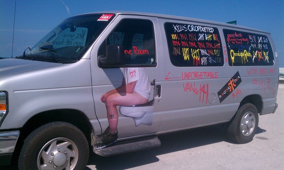 My amazing twelve person team met up on Thursday afternoon, packed our two vans full of running gear, munchies, and our fun-loving selves, and took off for Miami. Then we had to decorate our Ragnarrhea #2 team vans appropriately, which according to some is not appropriate at all.